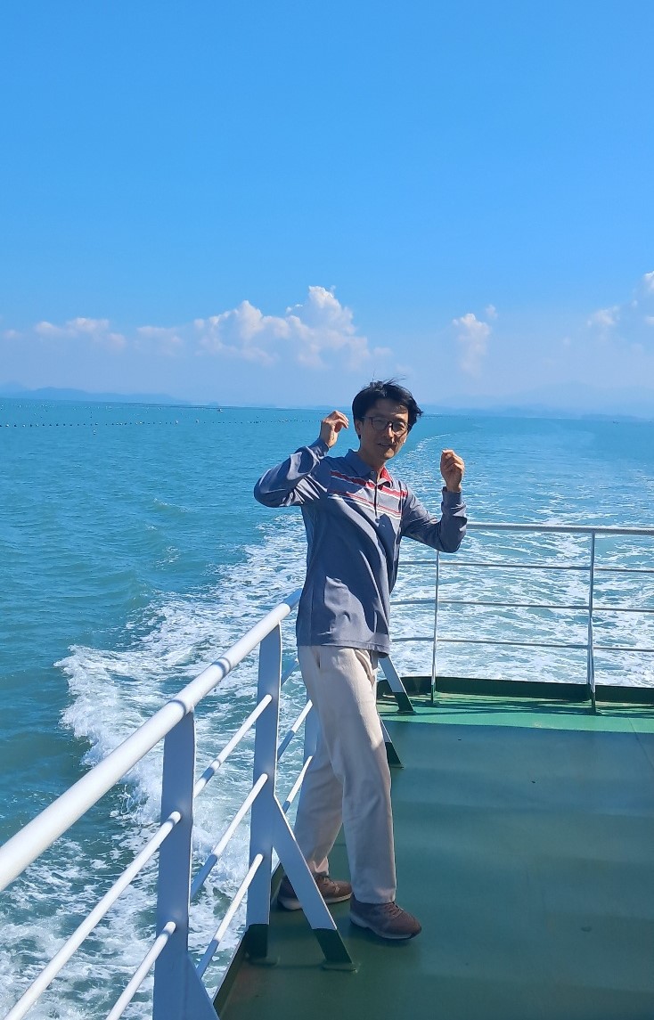 잠시 후면 배에 승용차를 싣고 나오면서 다도해의 푸른 바다를 바라보며 서 있을 아들의 모습이 떠오릅니다. 이 근사한 섬마을 선생님(교직은 아니지만...)이 수줍은 섬처녀를 만날 수도 있겠구나 하는 옛스러운 상상을 해 봅니다. (2024.9.28)